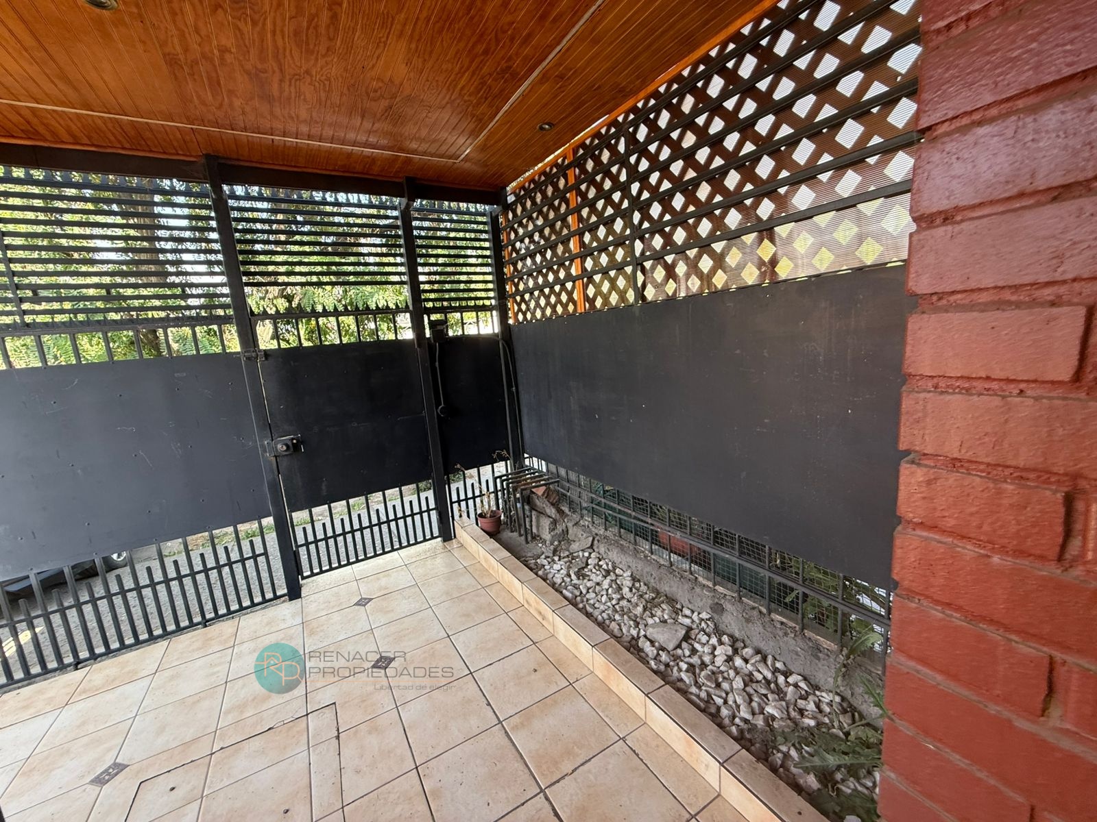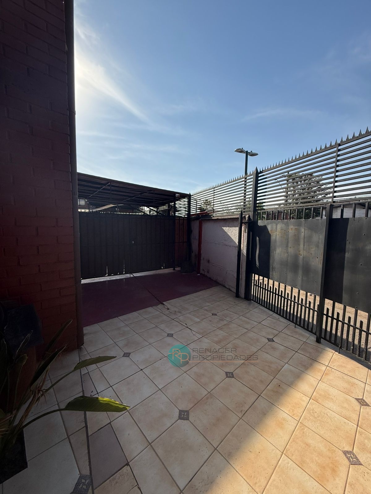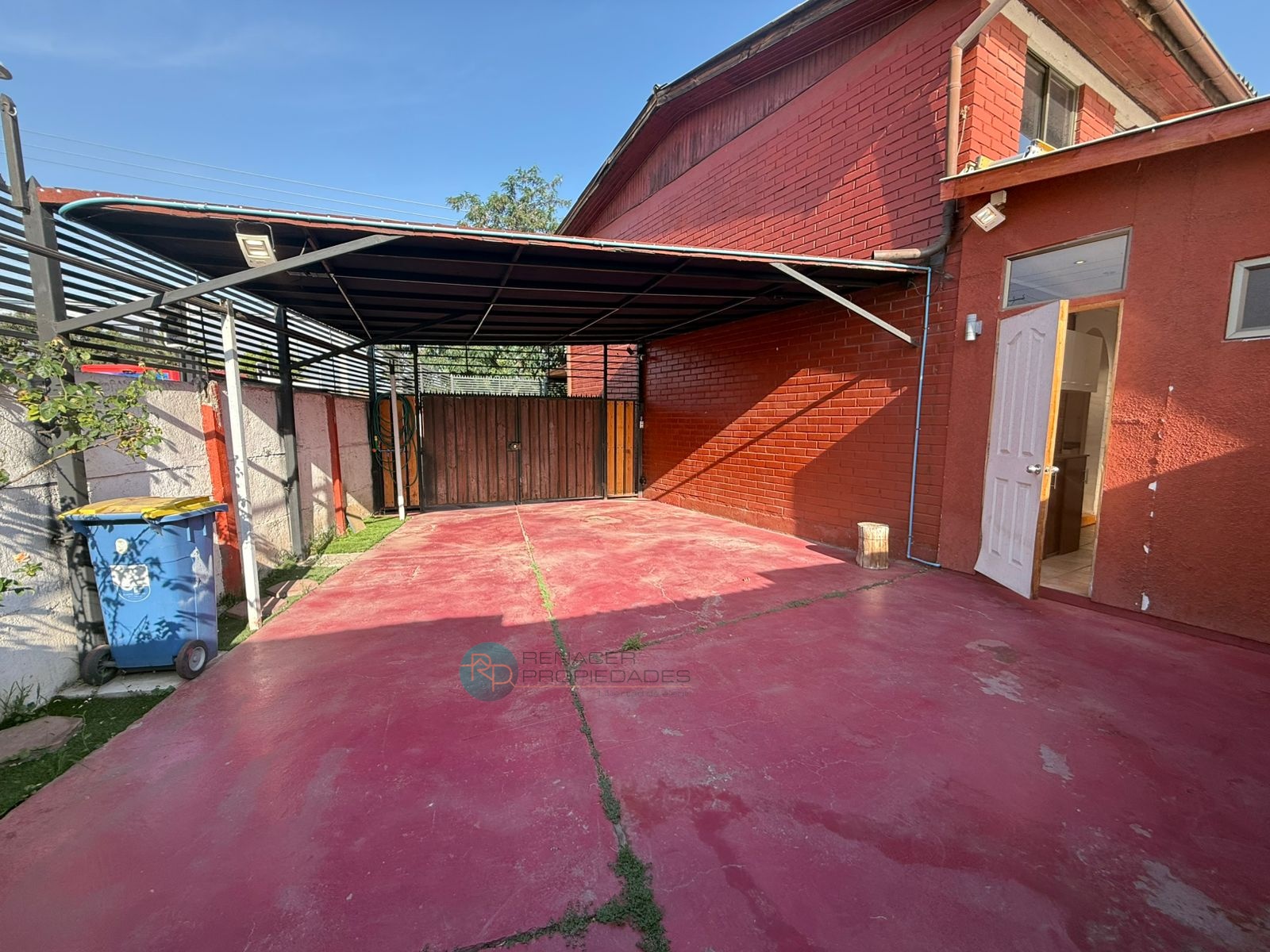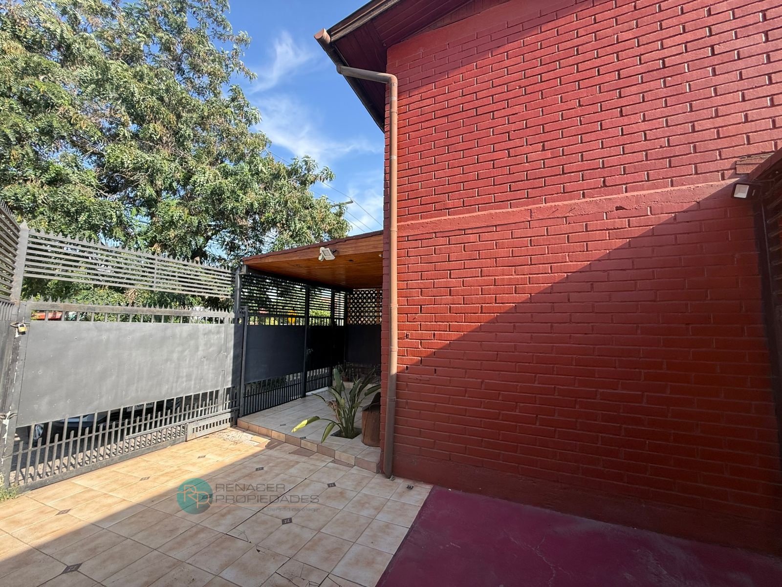 Gran sector de estacionamientos y patio pavimentado, con cobertizo metálico, que permite recibir varios autos o habilitar terrazas y áreas de trabajo. Rejas altas, portón metálico y antejardín en cerámica, lo que aporta seguridad y buena presencia hacia la calle.