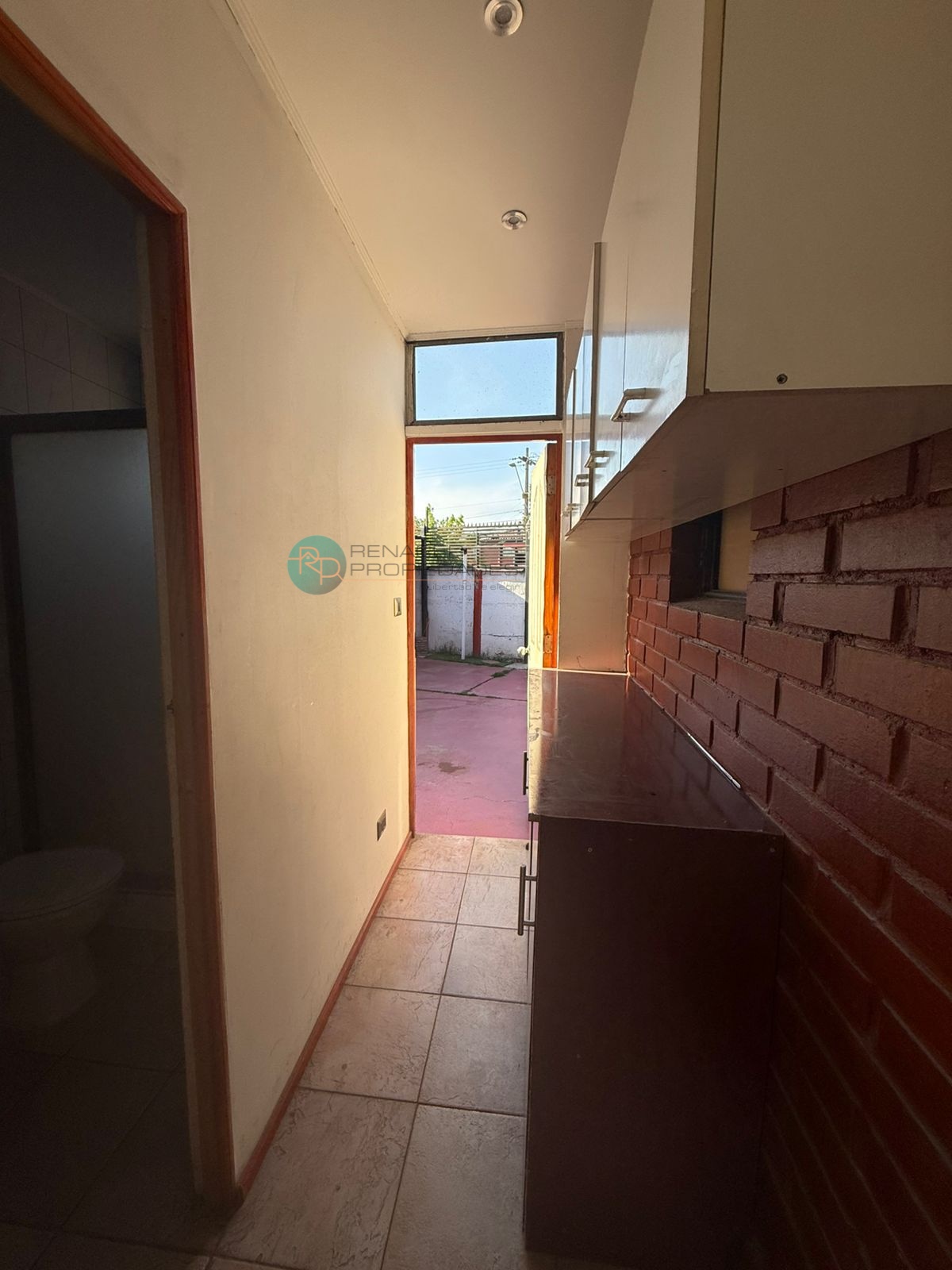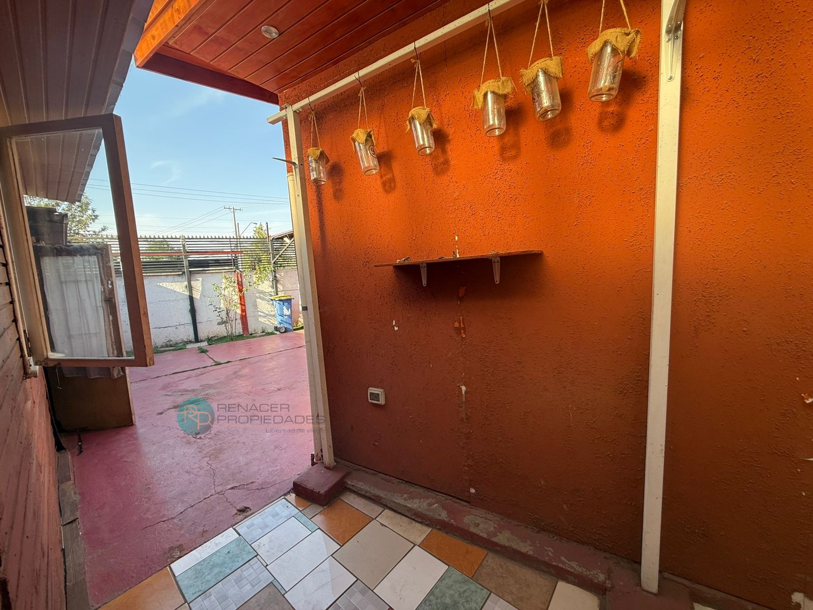 Gran cobertizo techado en patio posterior: perfecto para quinchos, reuniones o para ampliar el área útil de tu negocio. Agradable antejardín con cerámica, de fácil mantención.